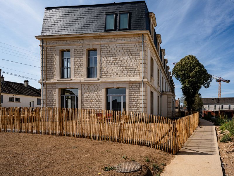 la résidence adélise, répartie sur trois étages, présente le charme de l'ancien tout en profitant du neuf en intérieur, de par sa réhabilitation. l'ensemble du programme est préservé et conforté sur le plan structurel : épaisseurs de plancher, sections de poutres et poteaux, tout en respectant la règlementation en vigueur. les grandes et hautes ouvertes donnent de la luminosité et de l'espace aux logements. une partie des appartements profite d'une double exposition est-ouest.