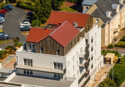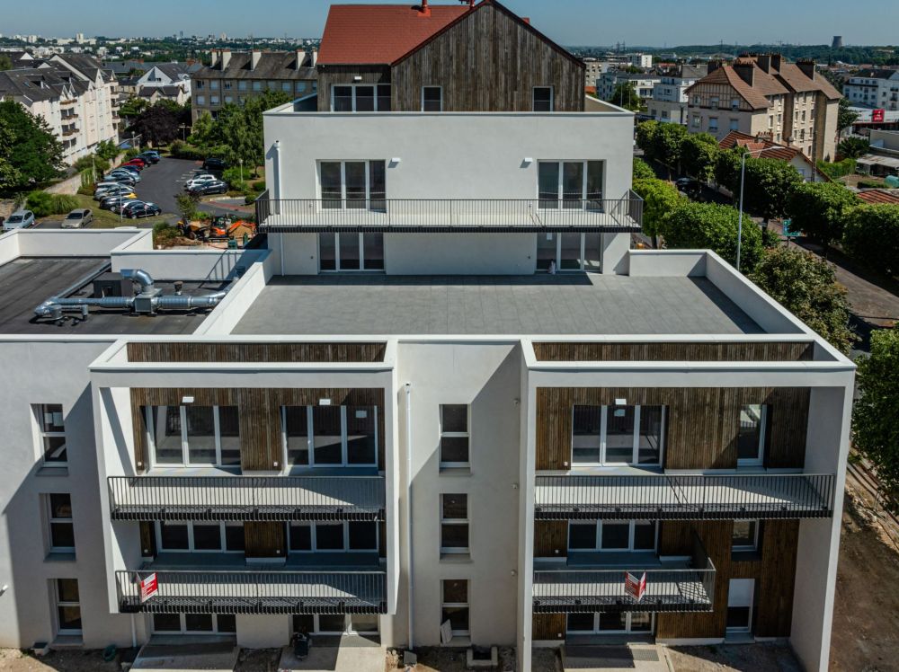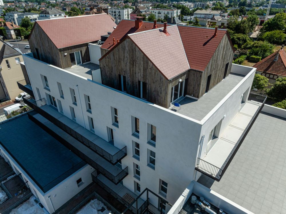 Vous serez séduits par son confort contemporain et son style s’intégrant parfaitement à son environnement. Développé en forme de L, l’ensemble imbrique deux volumes, le premier de deux étages et l’autre de 5 étages avec attique dont l’architecture reprend l’esprit des maisons anciennement présentes sur le site. Les toitures sont traitées en tuiles plates rouge et les matériaux utilisés en façade rythme l’architecture d’élégants éléments végétaux et minéraux.