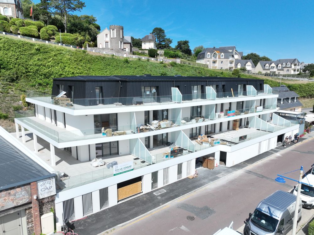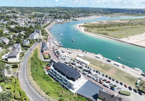 Les espaces extérieurs généreux offrent une véritable respiration autour du bâtiment et permettent de rejoindre à pied ou à vélo, la plage et le départ du sentier des douaniers, en front de mer, offrant des paysages à couper le souffle, pour un séjour loin du stress urbain.